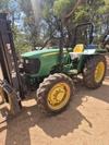 John Deere 5045R open cab, front & rear forks.
