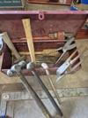 Post hole shovel, hoes, rake, post hole digger & s